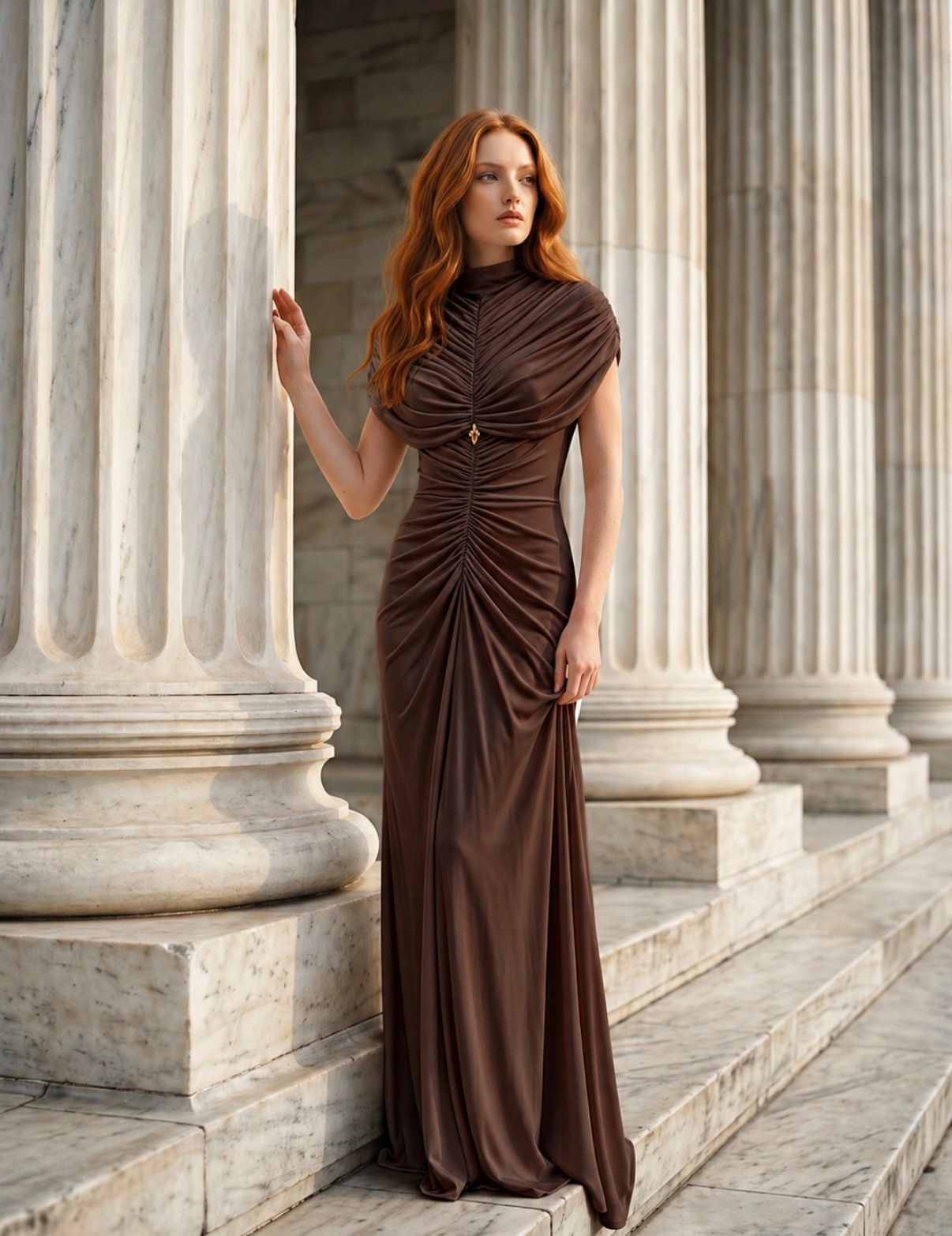 הבד הנשפך מעניק תנועה זורמת ונוחה, בעוד העיצוב הנקי משדר יוקרה שקטה וסטייל על-זמני. שמלת ערב צנועה זו מתאימה לנשים המחפשות שמלה אלגנטית לאירוע, שמלת ערב יוקרתית או שמלה קלאסית עם נוכחות עדינה ובלתי נשכחת.